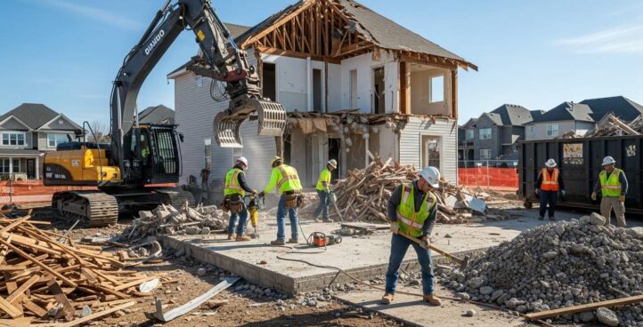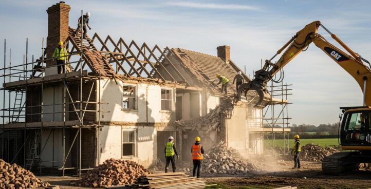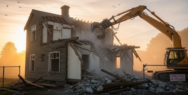 Демонтаж частного дома – комплекс процедур, подразумевающих как снос жилой постройки, так и расчистку участка с расположенными на его территории дополнительными постройками и коммуникациями.